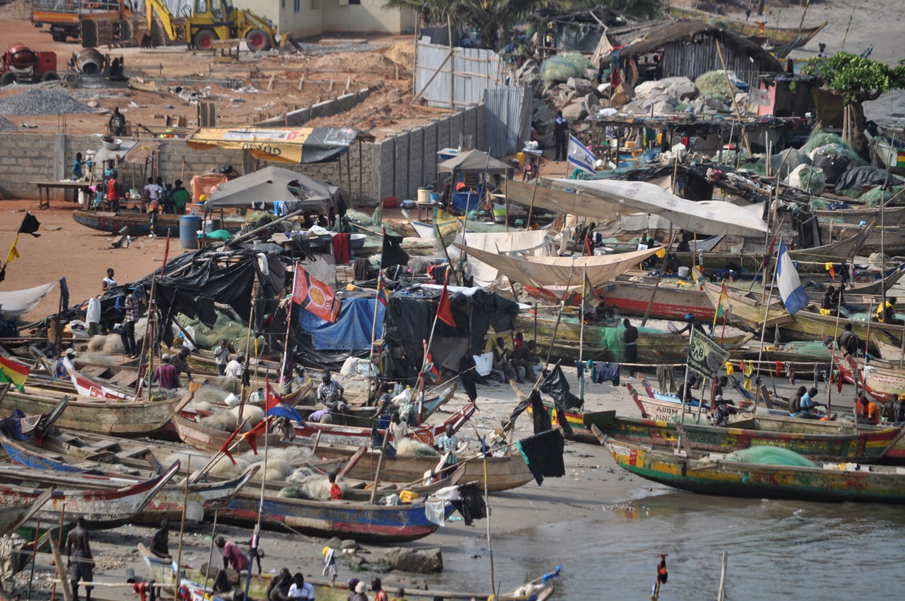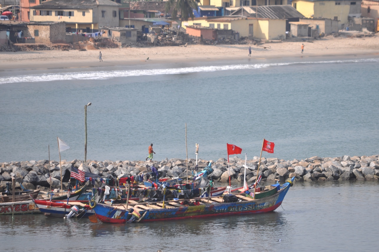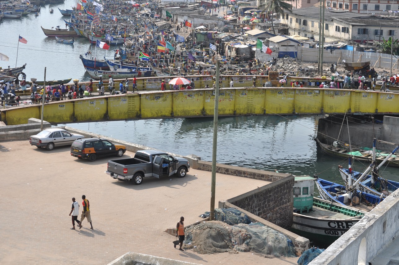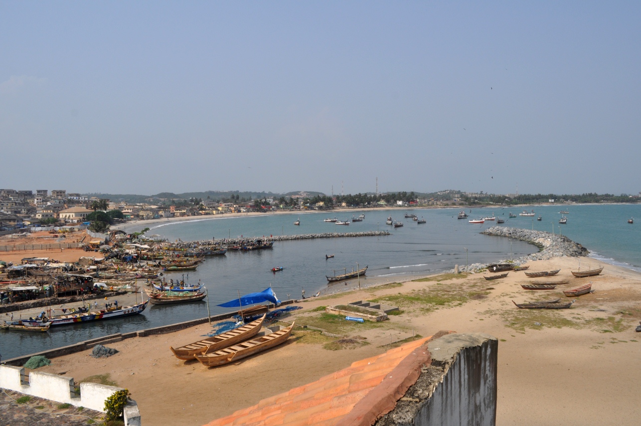 Elmina is a coastal town about 10 miles west of Cape Coast. The main site there is Elmina Castle (also known as St. George of the Mine Castle), which was built by the Portuguese in the late 1400s, and latest taken by the Dutch. Also, there's a crowded harbor in Elmina.
