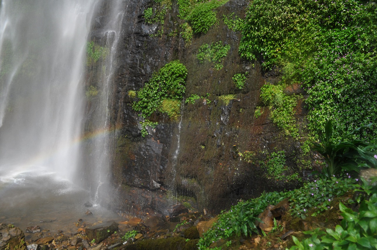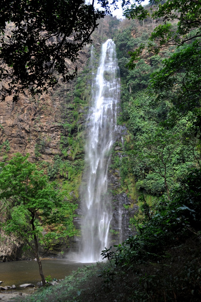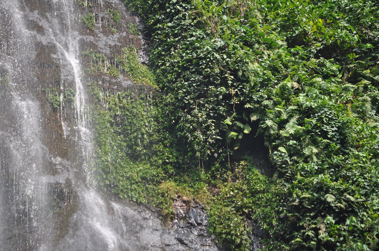 The upper part of the falls, including the cliff to the left with thousands of bats!