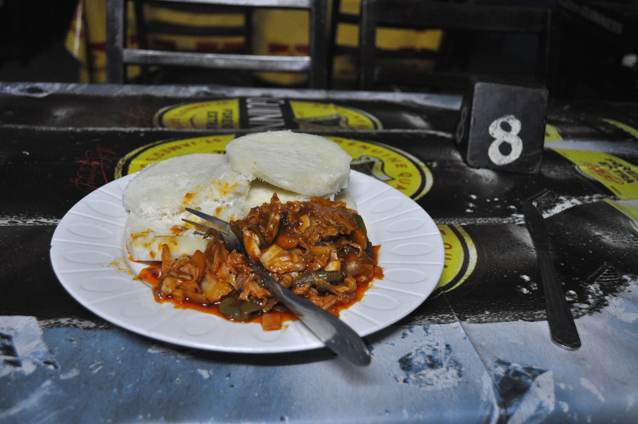 Some food in Hohoe, a vegetarian palaver dish with boiled yams...