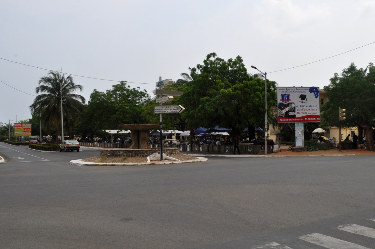 An intersection with the French style of direction markers (this is a former French colony, after all)...