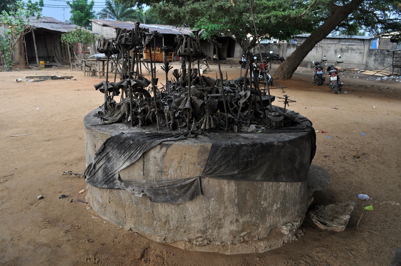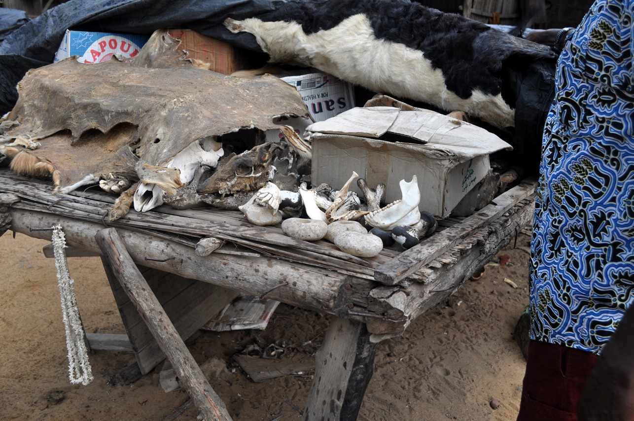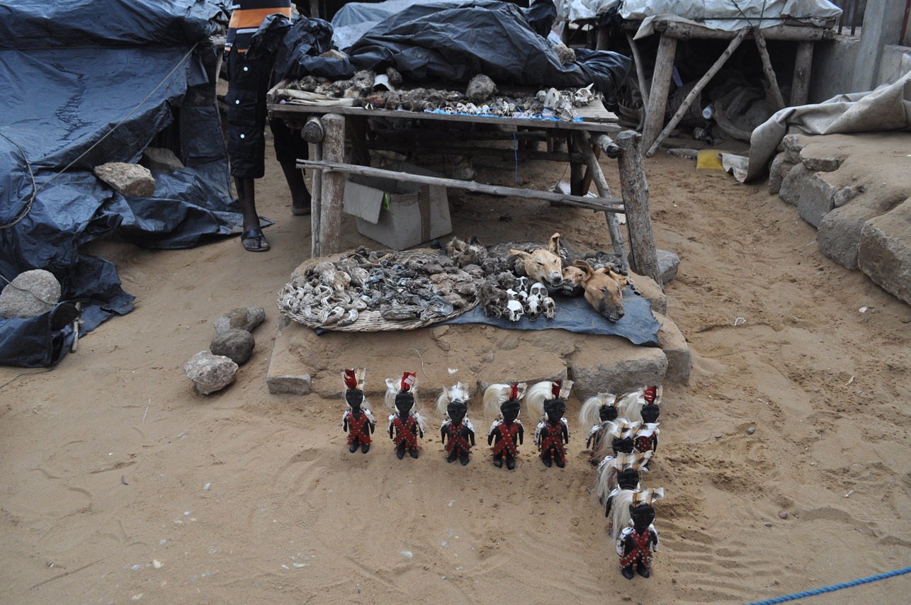 Voodoo (also called "vodum") is common in Togo and originated in neighboring Benin. There was a voodoo fetish market in the outskirts of Lomé. I went when there was a threat of rain (just light rain fell), so a lot of the items were covered up. However, these items included animal carcasses, skulls, etc., used for spells and medicine. (If you're grossed out by these things...don't continue any further!)