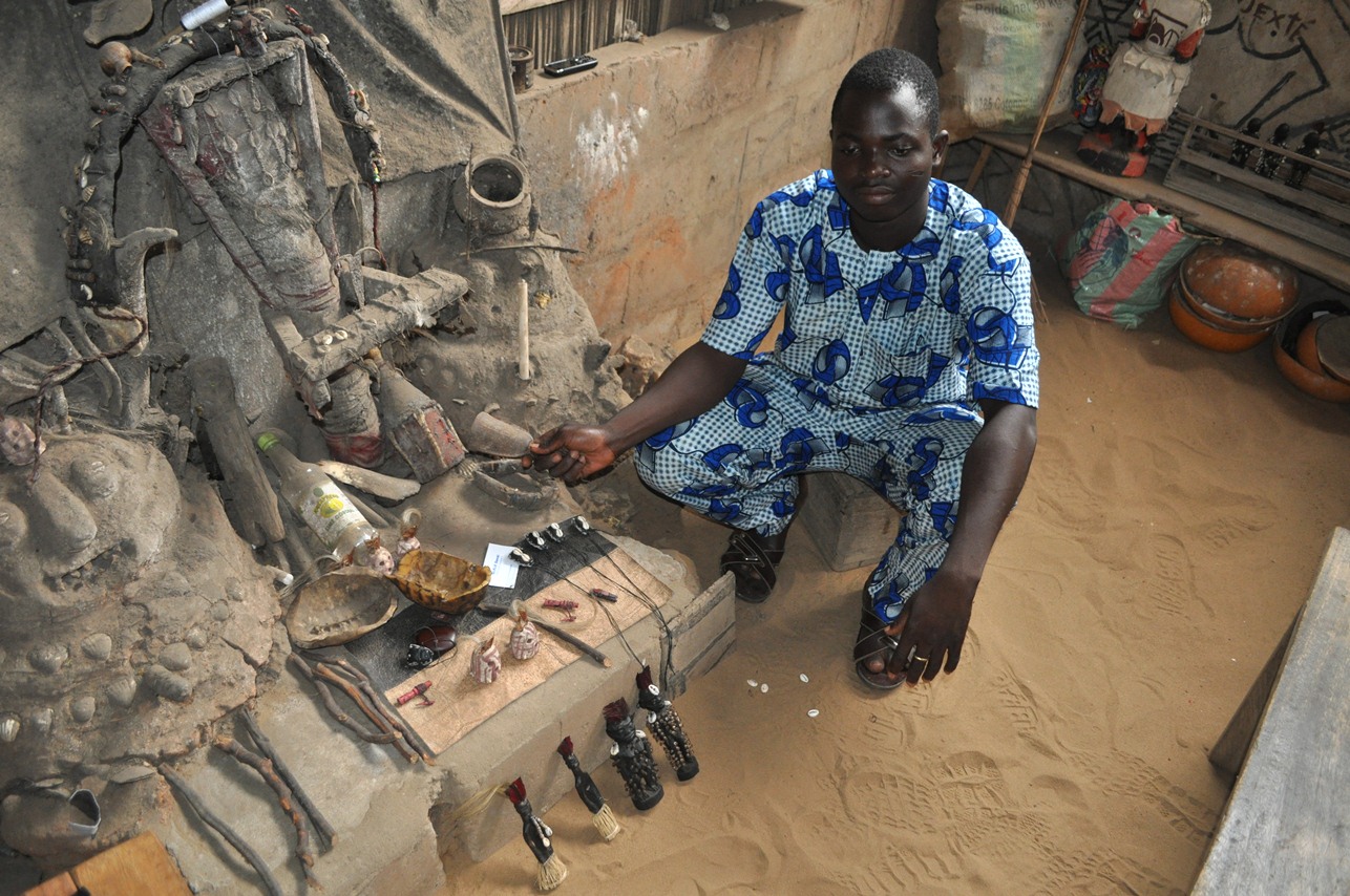 This person gives blessings (in this case, using things like voodoo dolls and ebony seeds)...