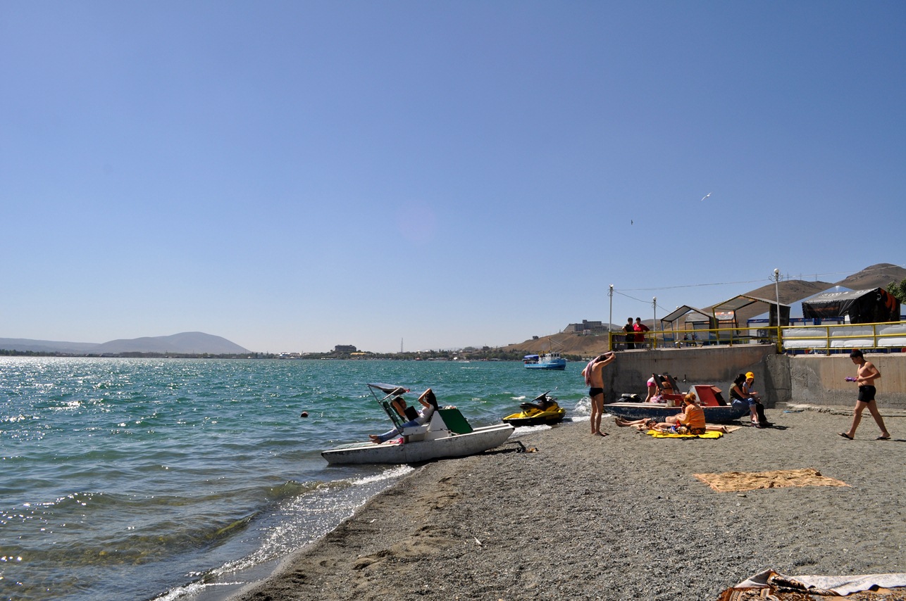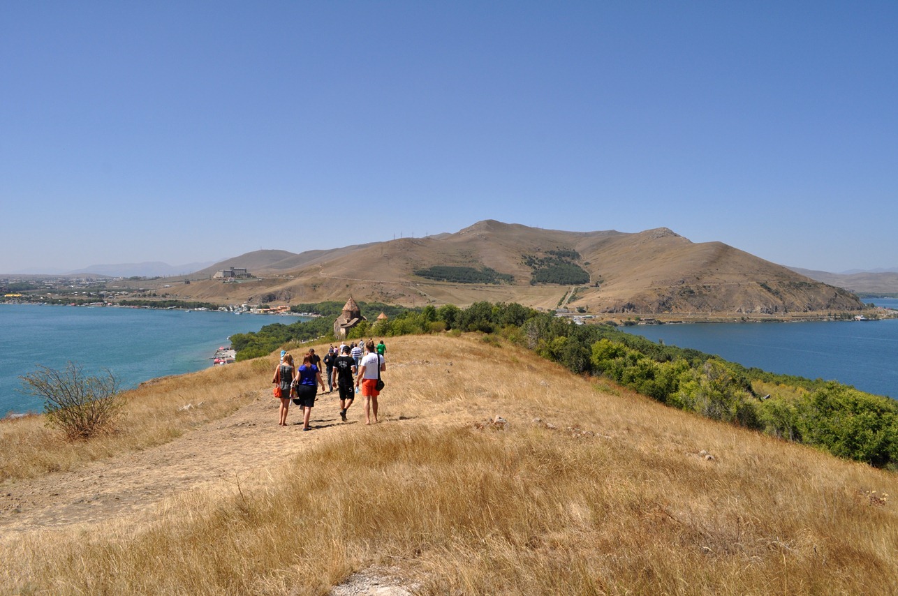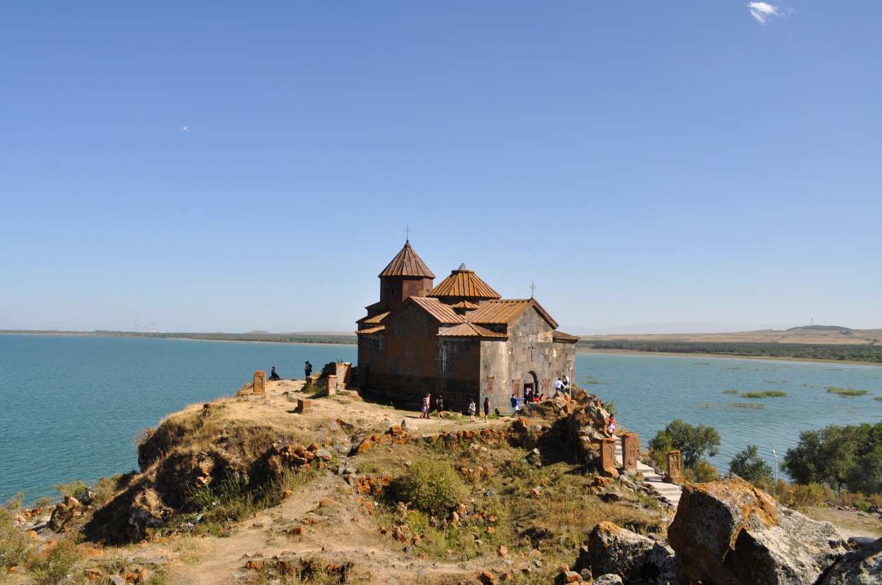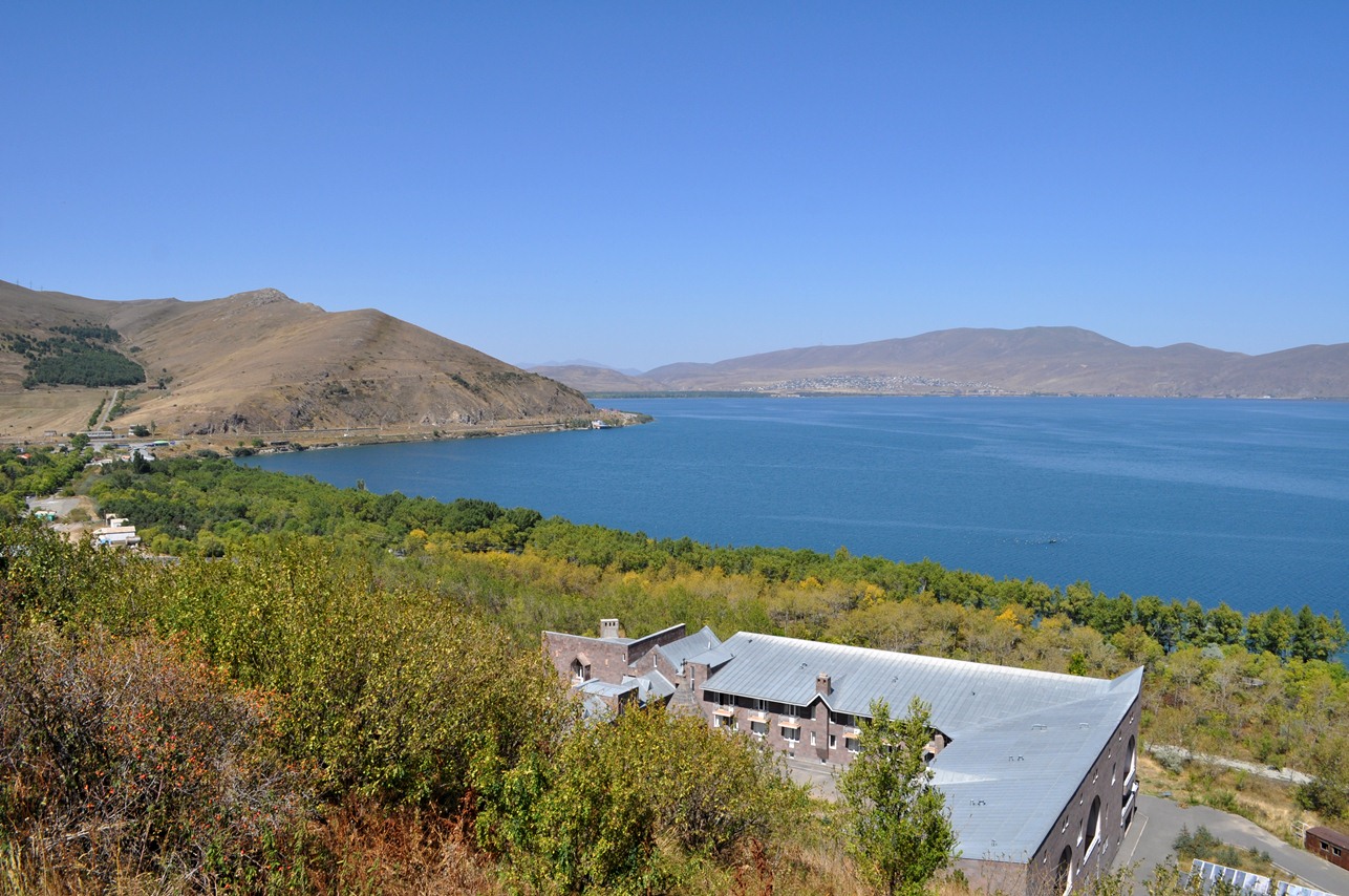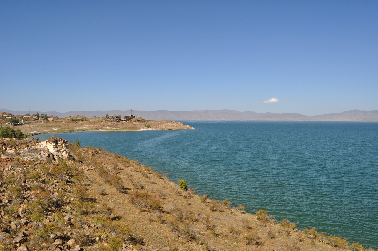 Lake Sevan is a large fresh-water lake in central/eastern Armenia. It's in a dry valley at around 6300 feet above sea level. Several monasteries are above the shores, as well as some mountains.