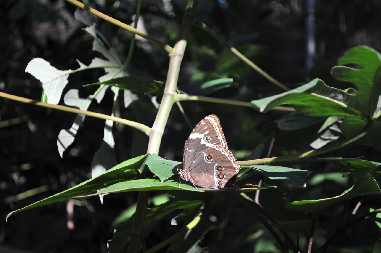 Here's a butterfly in the park (in a butterfly enclosure)...probably of the Riodinidea family (possibly the Eurybia genus)