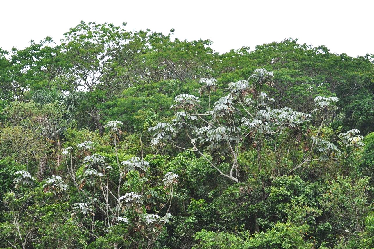 Further inland, about 50 miles east of São Paulo were these silver-leafed Cecropia hololeuca...