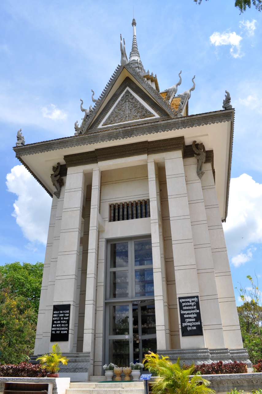 Buddhist stupa with the public display of skulls from Choeung Ek...