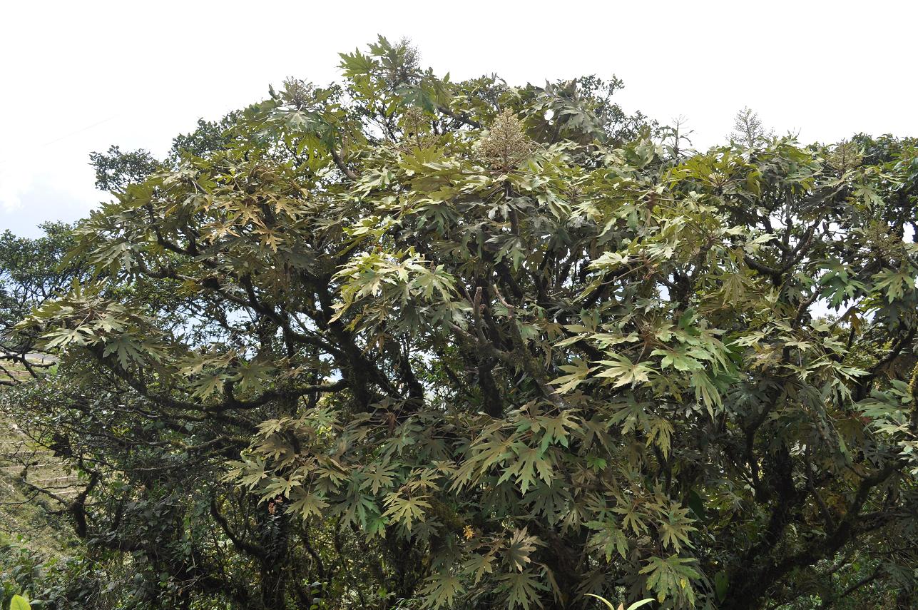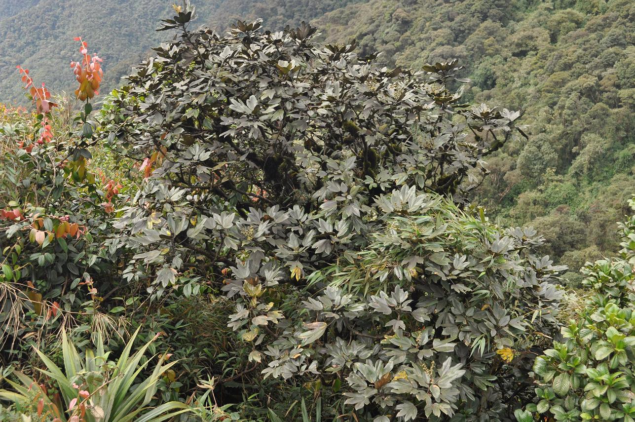 Oreopanax floribundum (with a few flower clusters) at the pass...