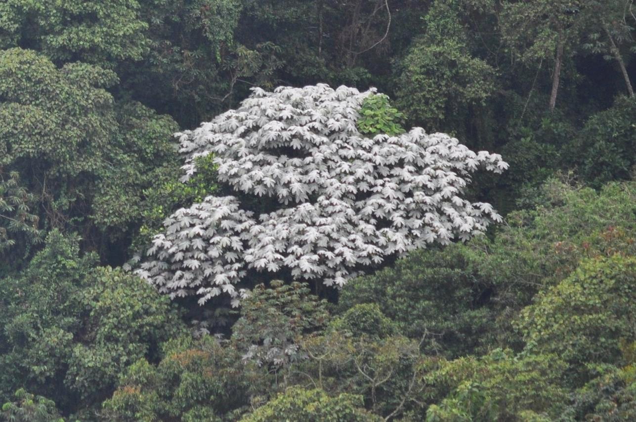 An incredible (and endemic to that part of Colombia) silver cecropia (Cecropia telealba) viewed from the same location...