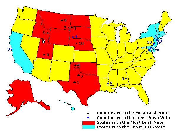 Counties with the Highest Percentage of Their 2000 Presidential Vote for George W. Bush