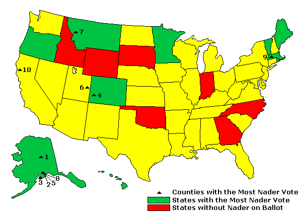 Counties (and Alaskan Districts) with the Highest Percentage of Their 2000 Presidential Vote for Ralph Nader