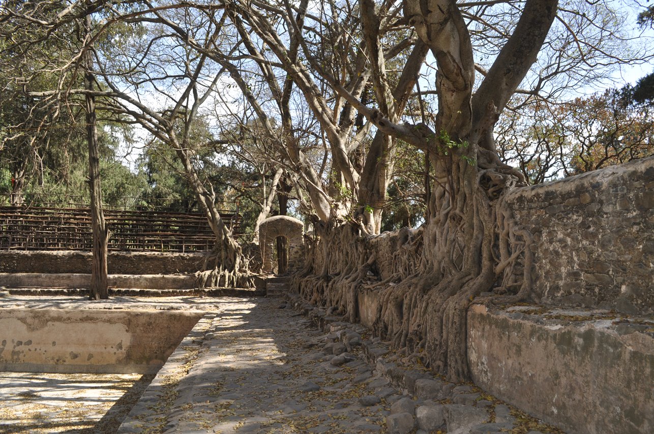 The roots of a Ficus (possibly Ficus tinctoria) cover one of the walls...