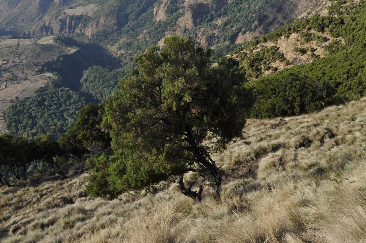 The East African juniper (Juniperus procera) was common in parts of the Simien Mountains...
