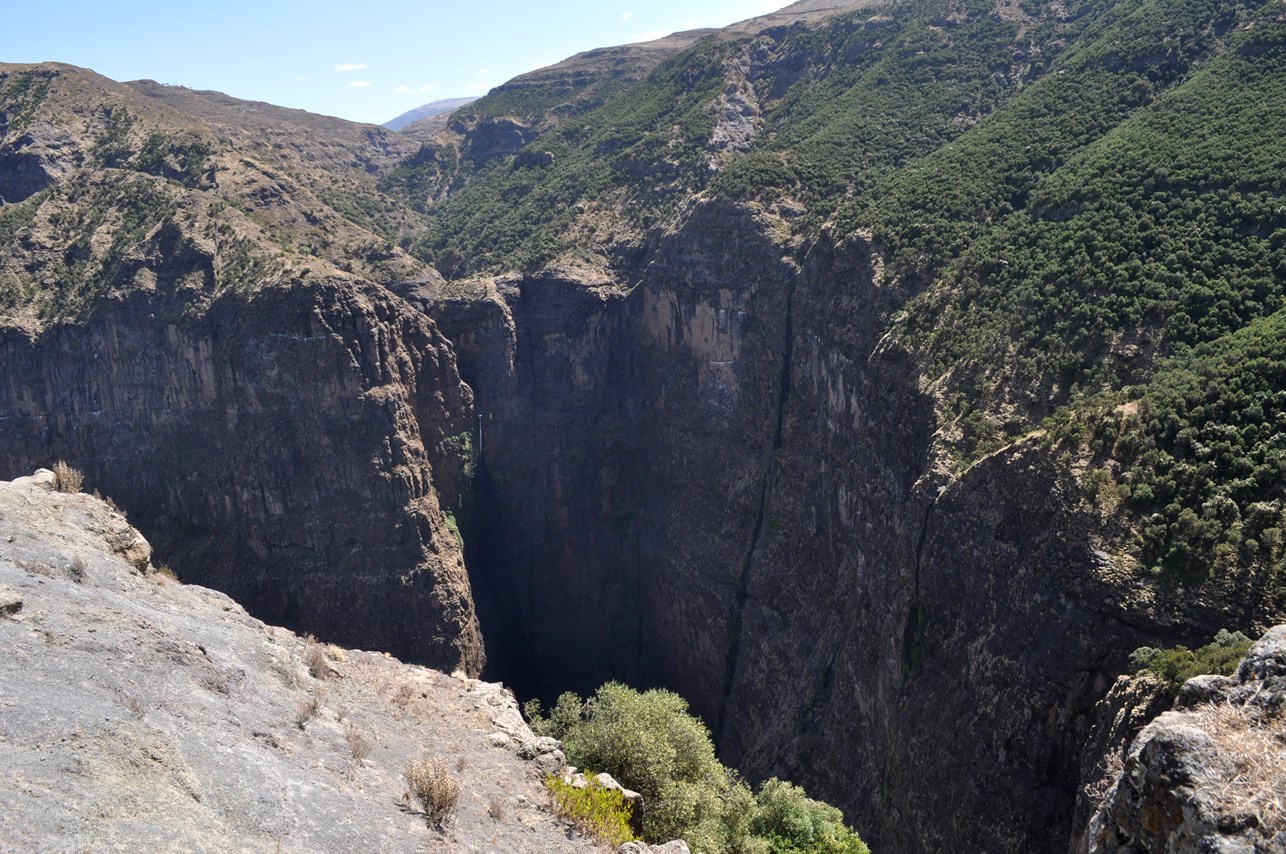 A bigger view of the canyon that the waterfall goes into (note how big the cliffs are relative to the waterfall)...