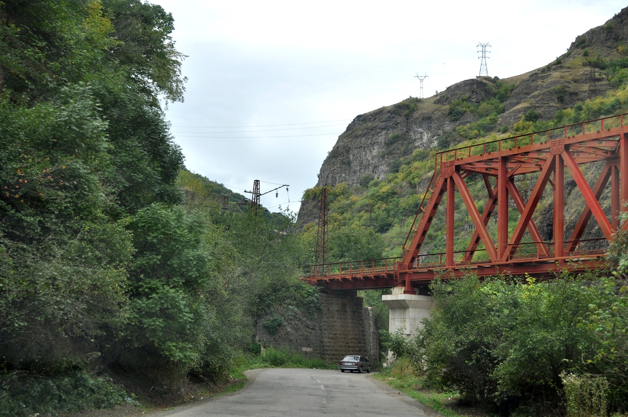 Here's a highway in the far north part of Armenia (near the border with Georgia)--with a railroad bridge...