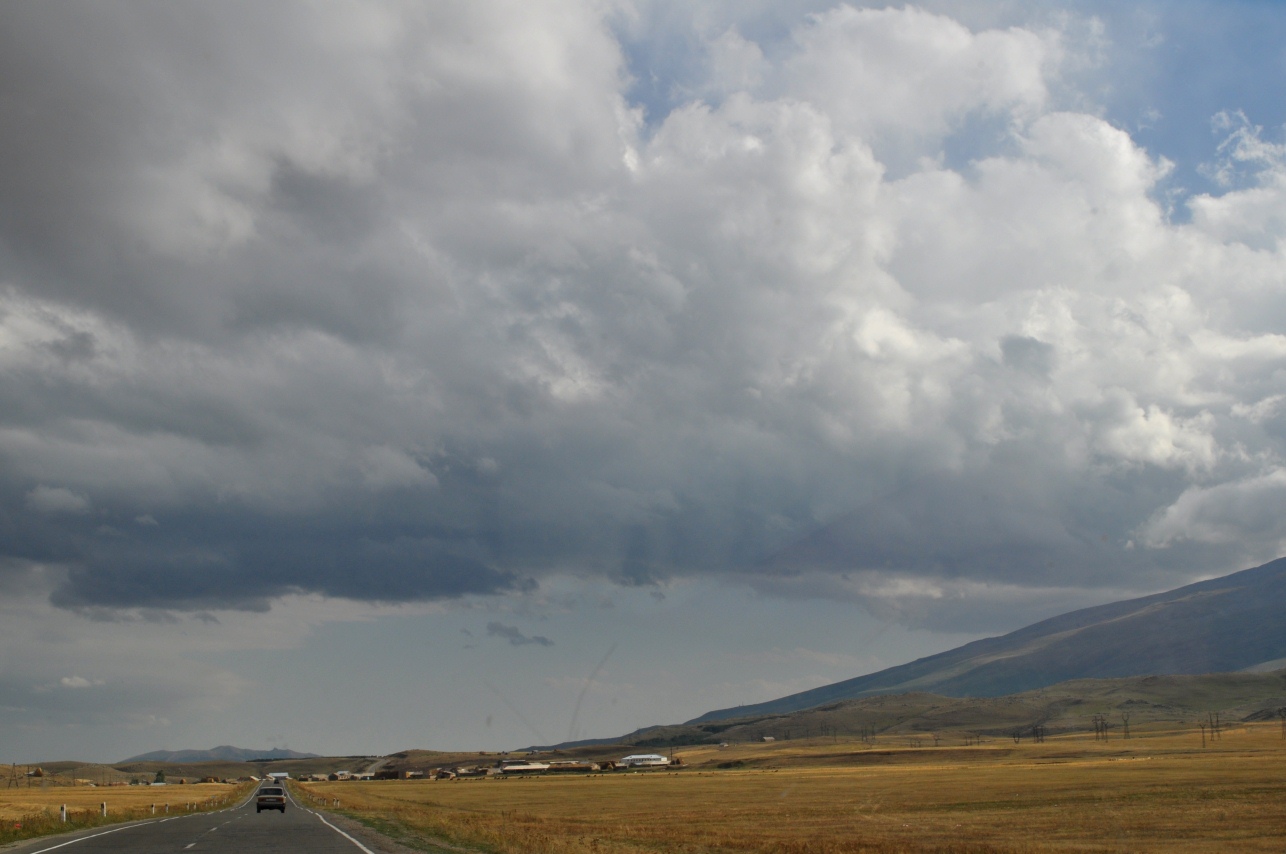 A highway in a relatively flat part of Georgia, about 30 miles north of Tbilisi (along the road to Kazbegi)...
