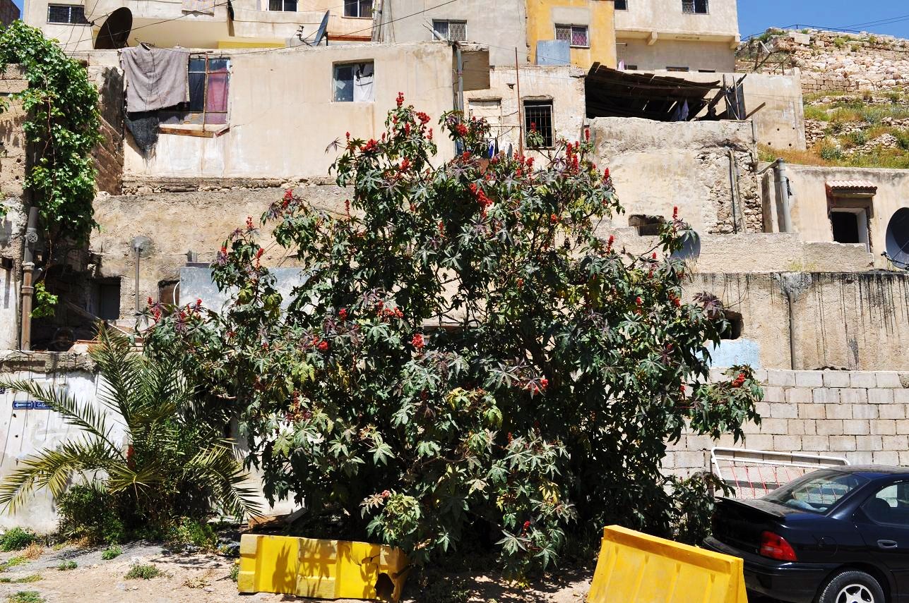 Between the Roman theatre and the citadel was this large castor oil plant (Ricinus communis). Amman generally gets freezes (and snow, sometimes heavy) most winters, but tender vegetation can grow in thermal belts...
