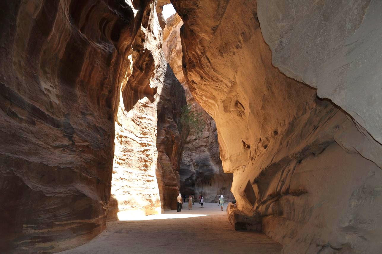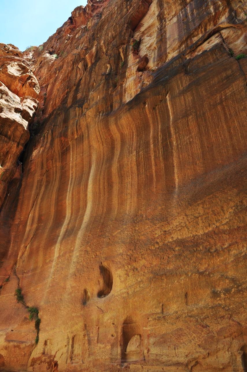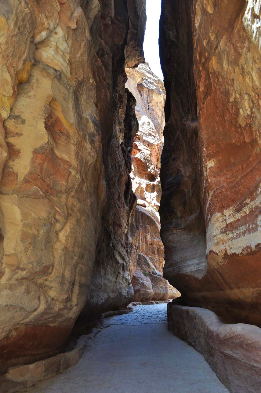 Here is the spectacular gorge of Petra, called As-Siq, the original course of the Wadi Musa (though flood waters are diverted through a tunnel--for obvious reasons!)...