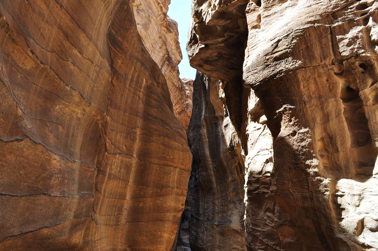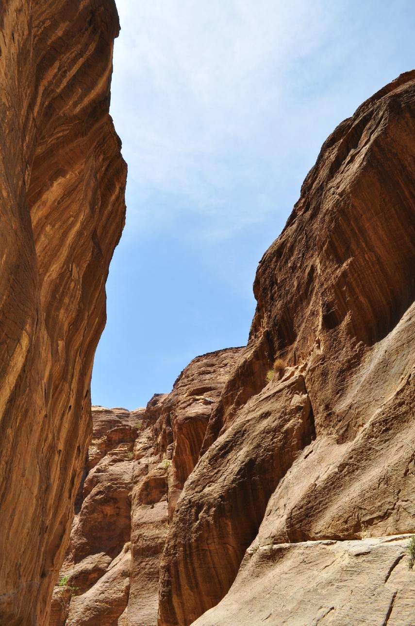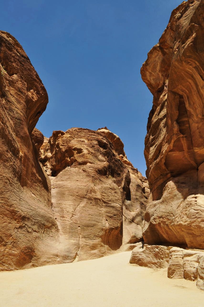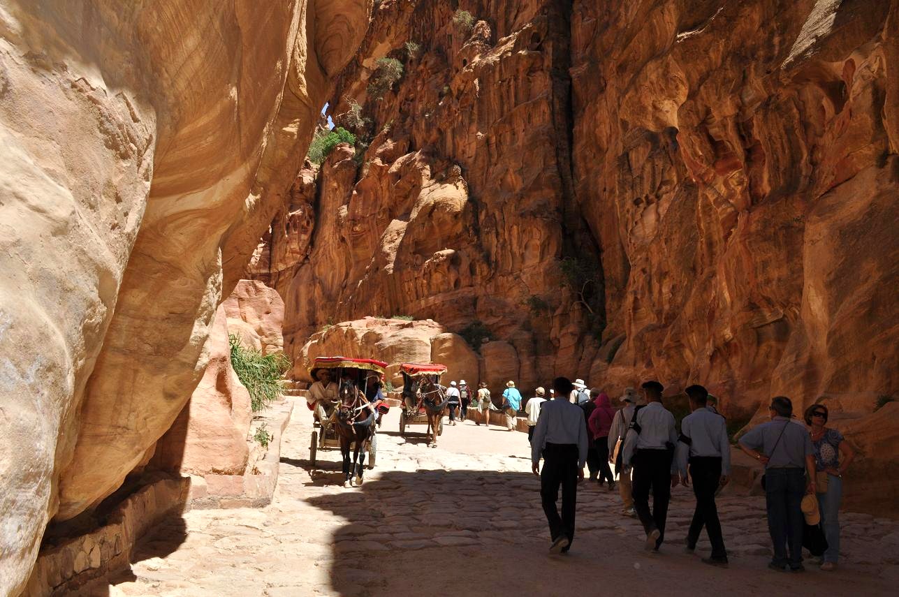 Here is the spectacular gorge of Petra, called As-Siq, the original course of the Wadi Musa (though flood waters are diverted through a tunnel--for obvious reasons!)...