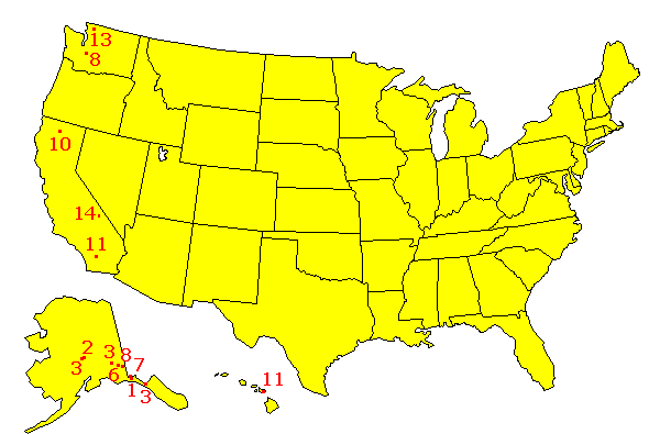 Here are the mountains in the United States with elevation gains of 10,000 feet in less than 10 miles (less than 5 miles in Alaska). Not only does Alaska have the highest mountains in the United States, but it also has the steepest. The south and west slopes of Mt. St. Elias, in southeastern Alaska are the steepest in the country (based on the criteria used here), slightly edging out the north slope of Denali. Those slopes average approximately 45 degrees for over 2 miles--in both the horizontal and the vertical!!!
