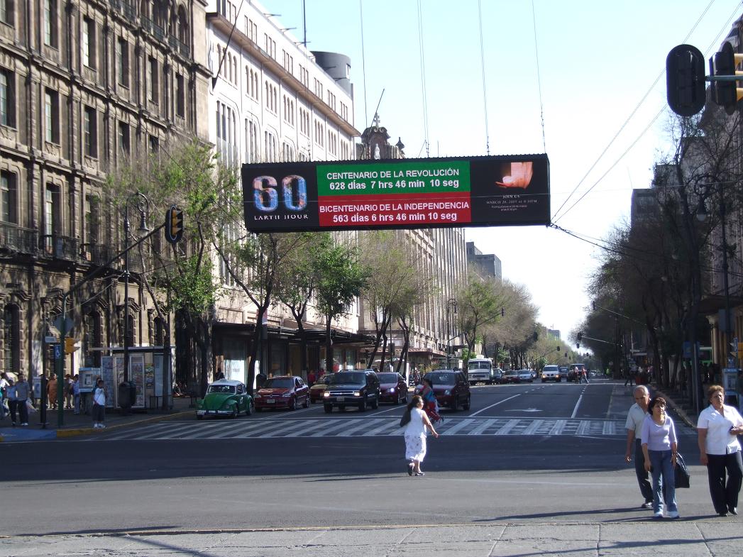 Countdowns to the 2010 Centennial and Bicentennial of 2 Important Mexican Events (and, yes, those are Siberian elms planted along the street, definitely not Mexico City's best choice of tree!)...