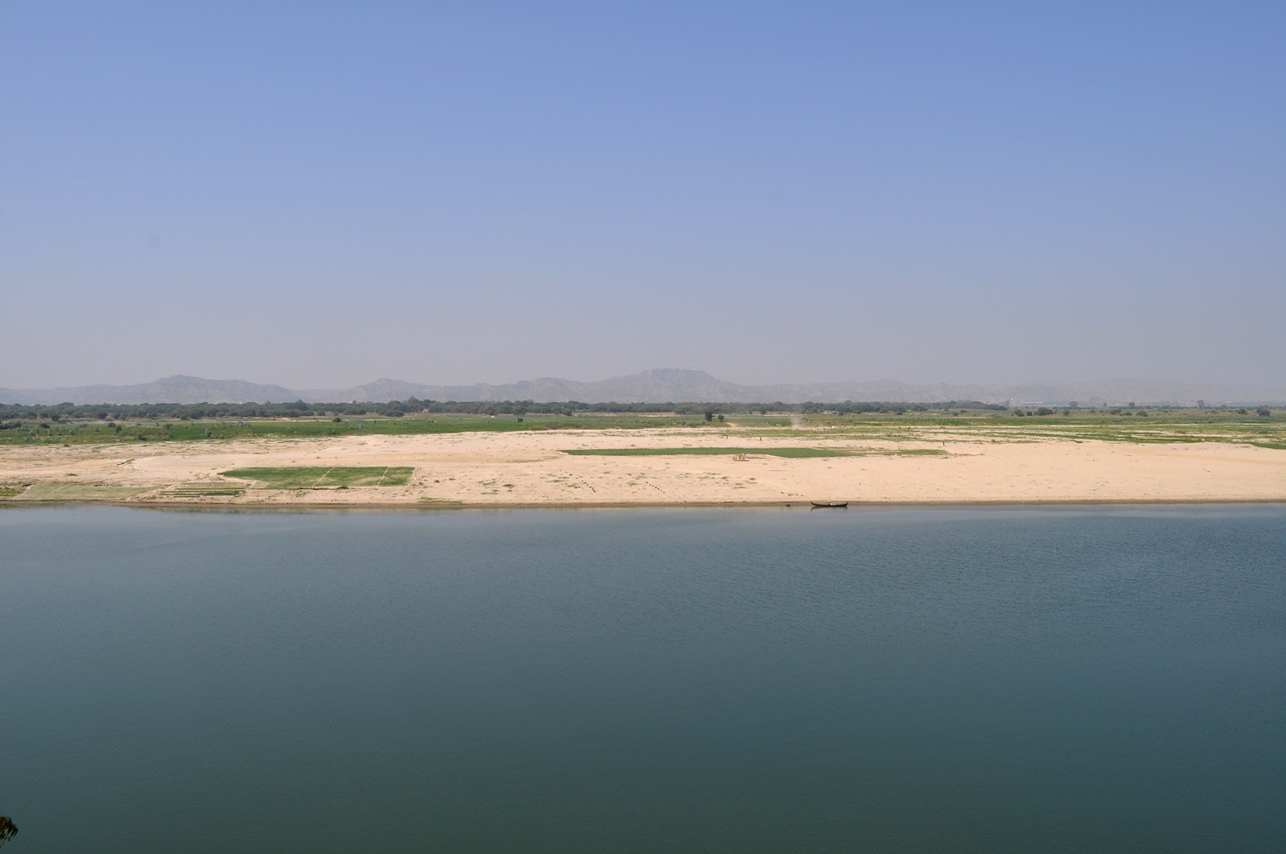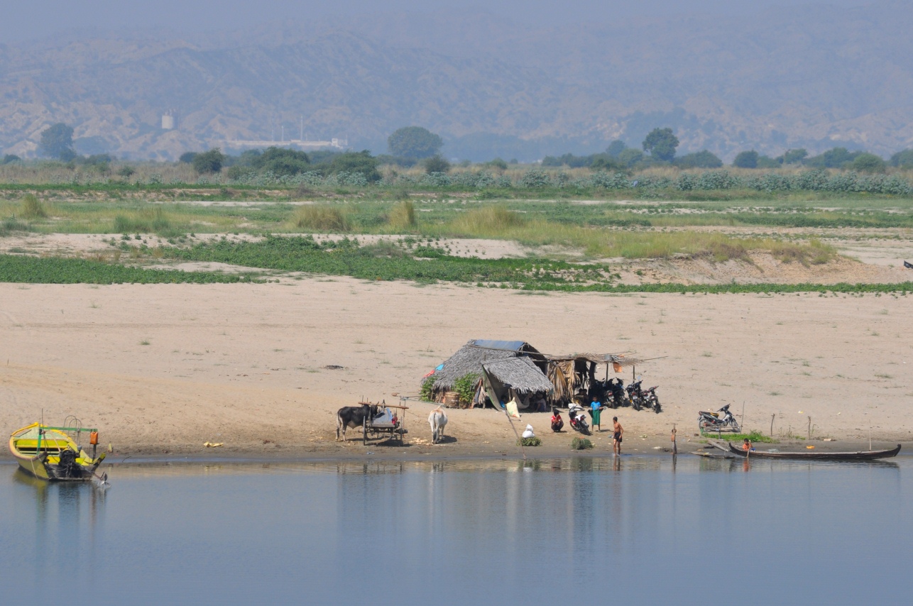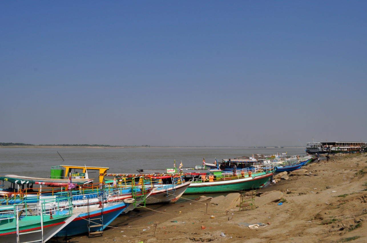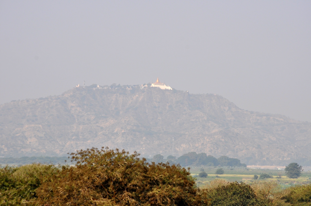 Tan Kyi Tuang is a large temple on a hill a few miles away, on the other side of the Ayeyarwady River, though difficult to view in the haze (mostly from burning of fields in the region)...