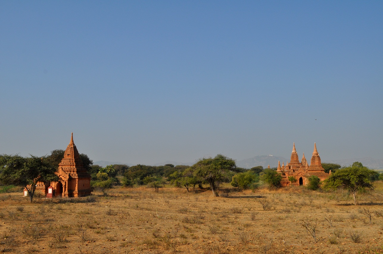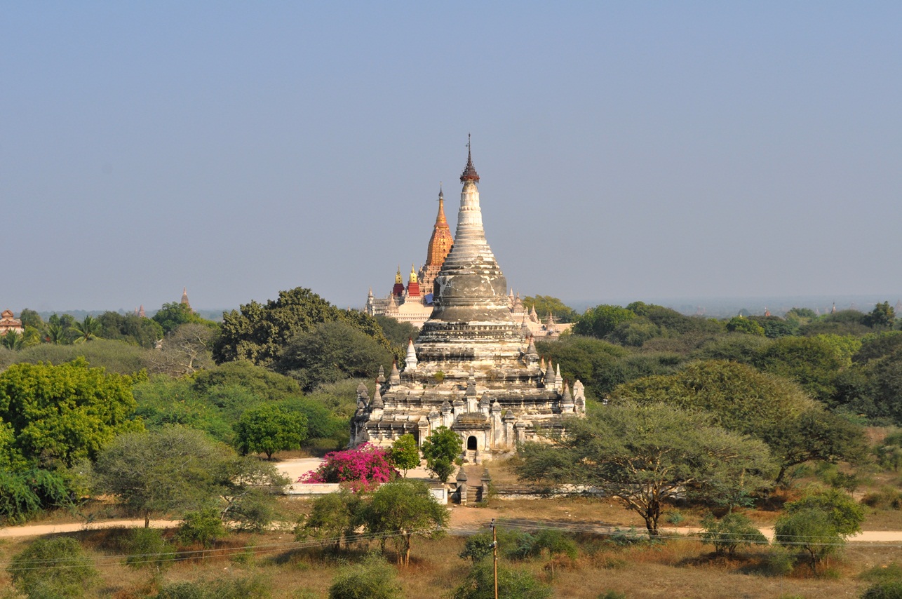 View from Shwegugyi east towards Ananda Phaya, with another temple in front...