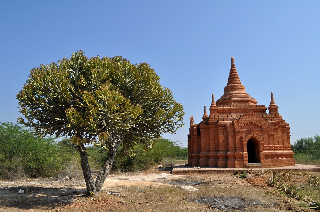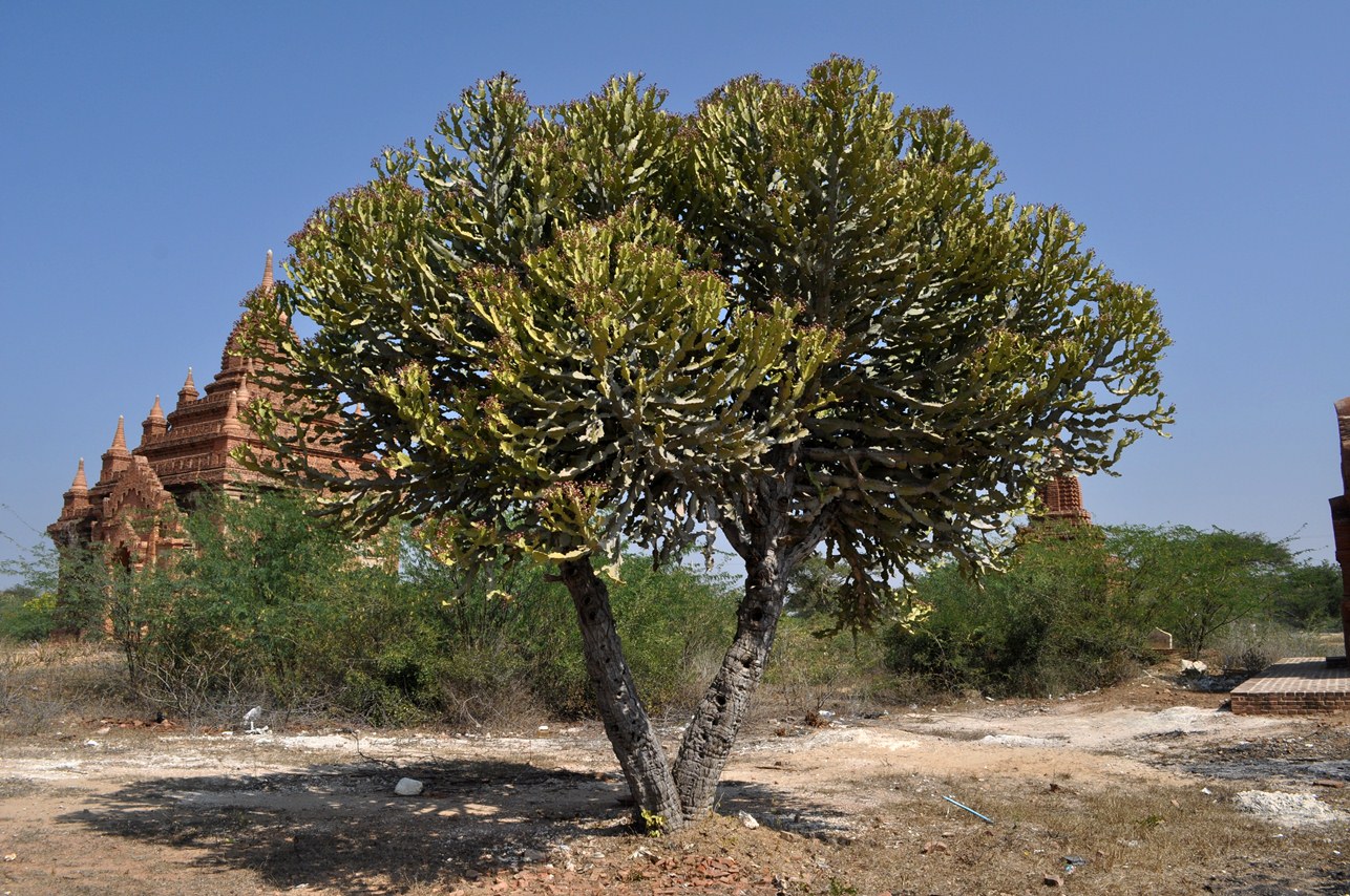 A small temple with a native succulent tree called the antique spurge (Euphorbia antiquorum)...