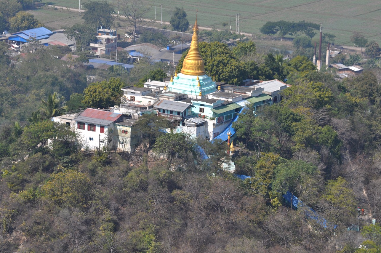 Zooming towards Mandalay Hill with the Su Taung Pyei Pagoda at the top...