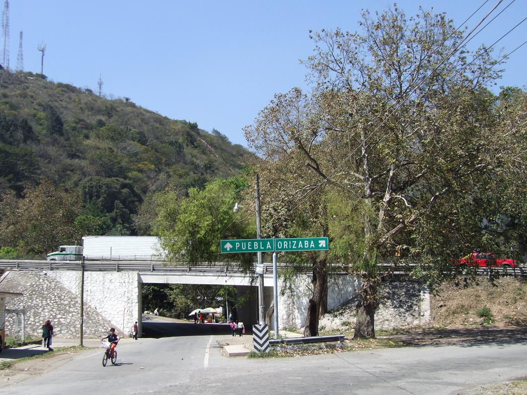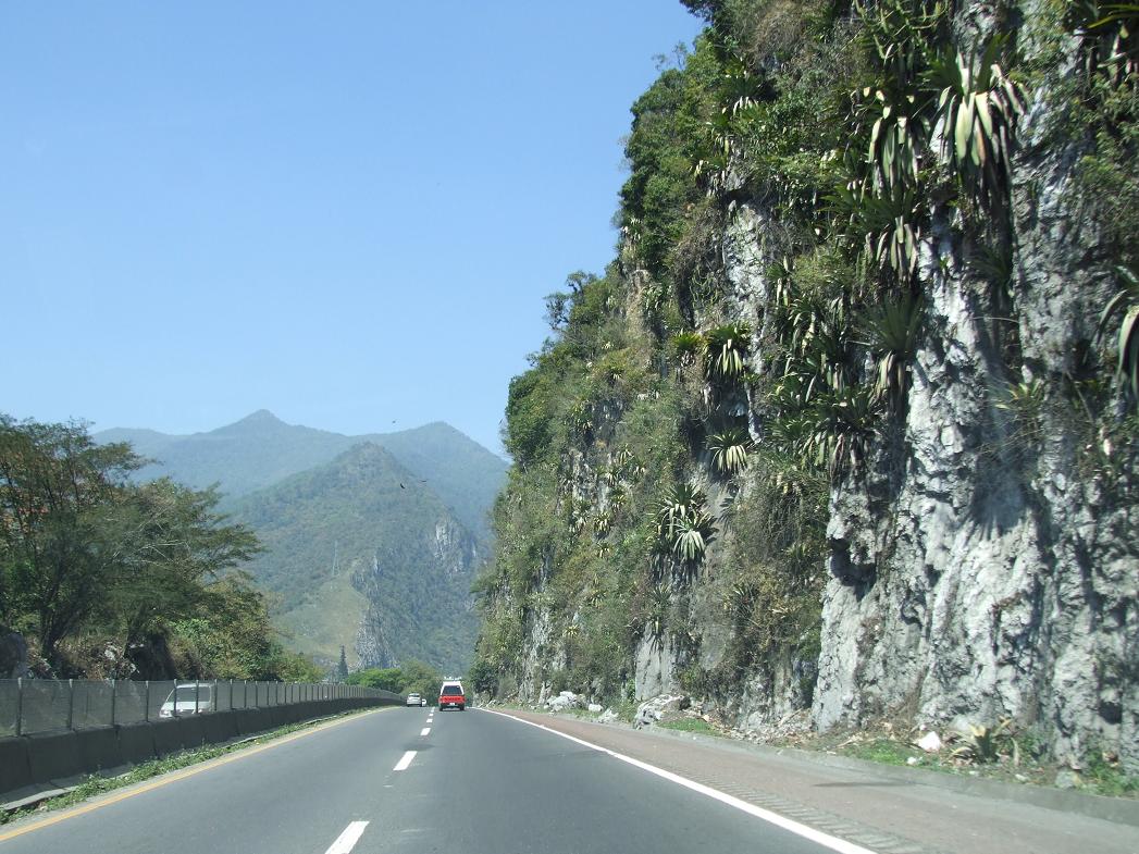 The turnpike just a short distance to the east (towards Orizaba)...note the bromeliads on the cliff!