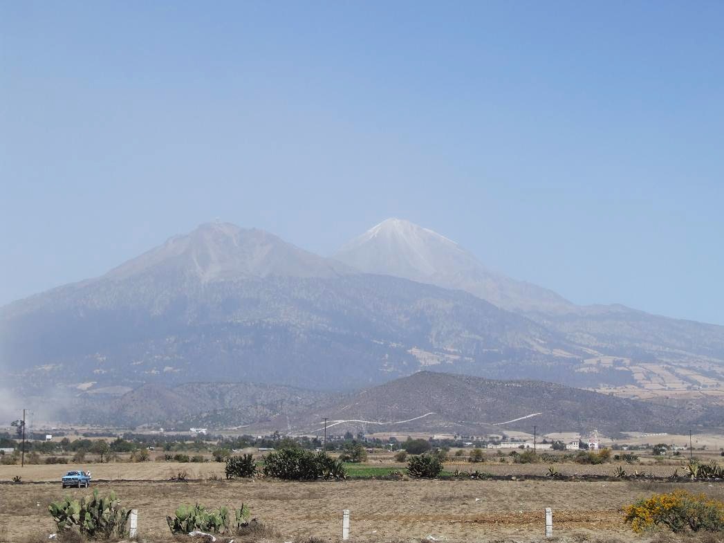 Note that Pico de Orizaba is barely visible in the distance (in the haze)--look for the cloud--then look to the right for what appears to be a smaller cloud (that's the peak)...