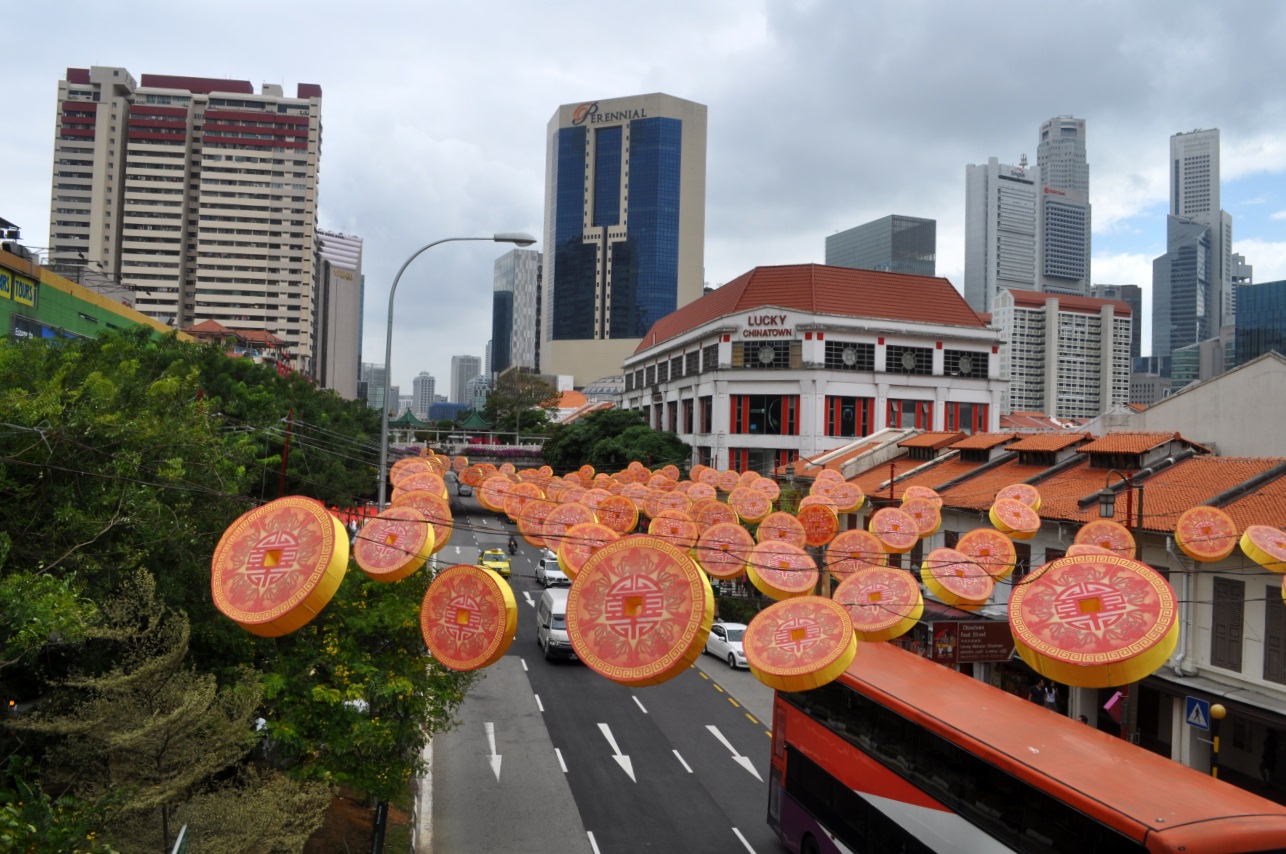 A mix of older smaller buildings (built when Singapore was still British owned) and the larger newer buildings in the background...