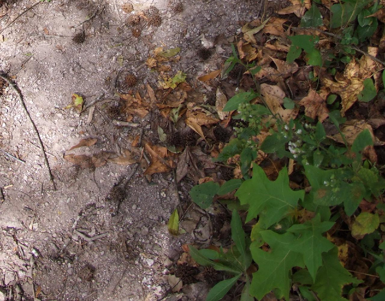 Looking down at the ground...with fruits (note what appears to be a small oak--there were larger (evergreen) oaks in the area but with leaves resembling live oaks)...