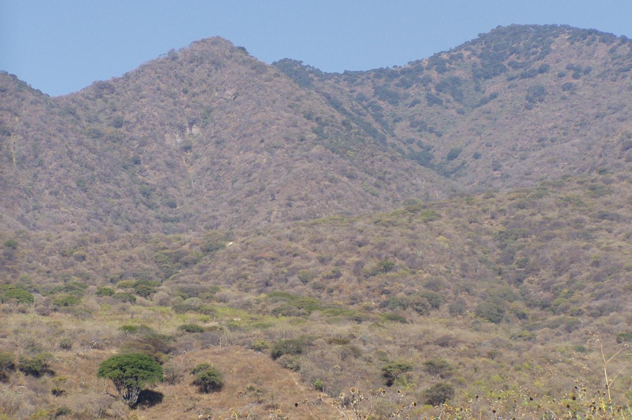 Montane tropical dry forest above Ajijic, including a large Pachycereus...
