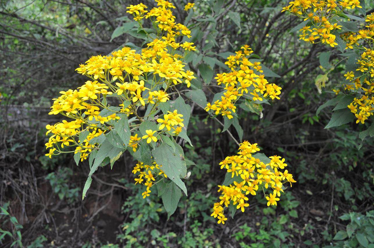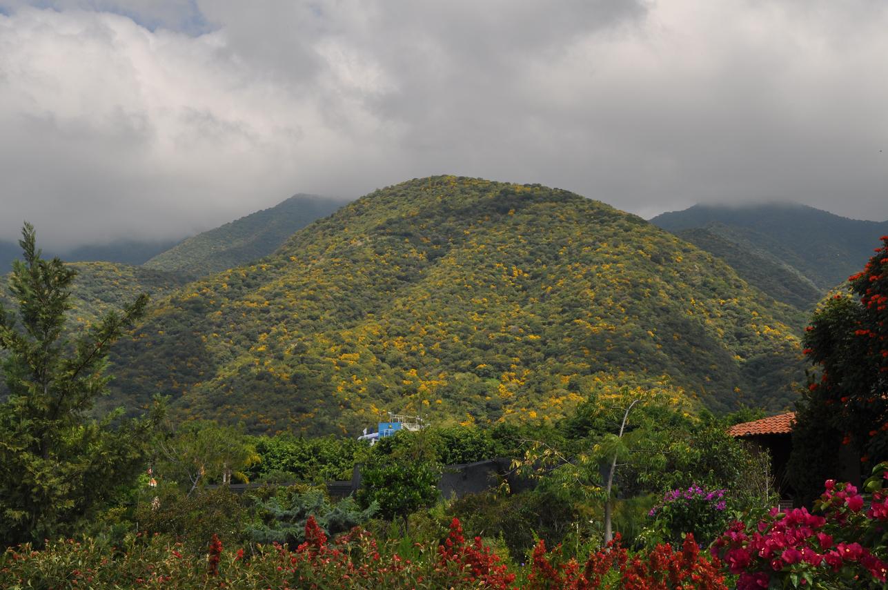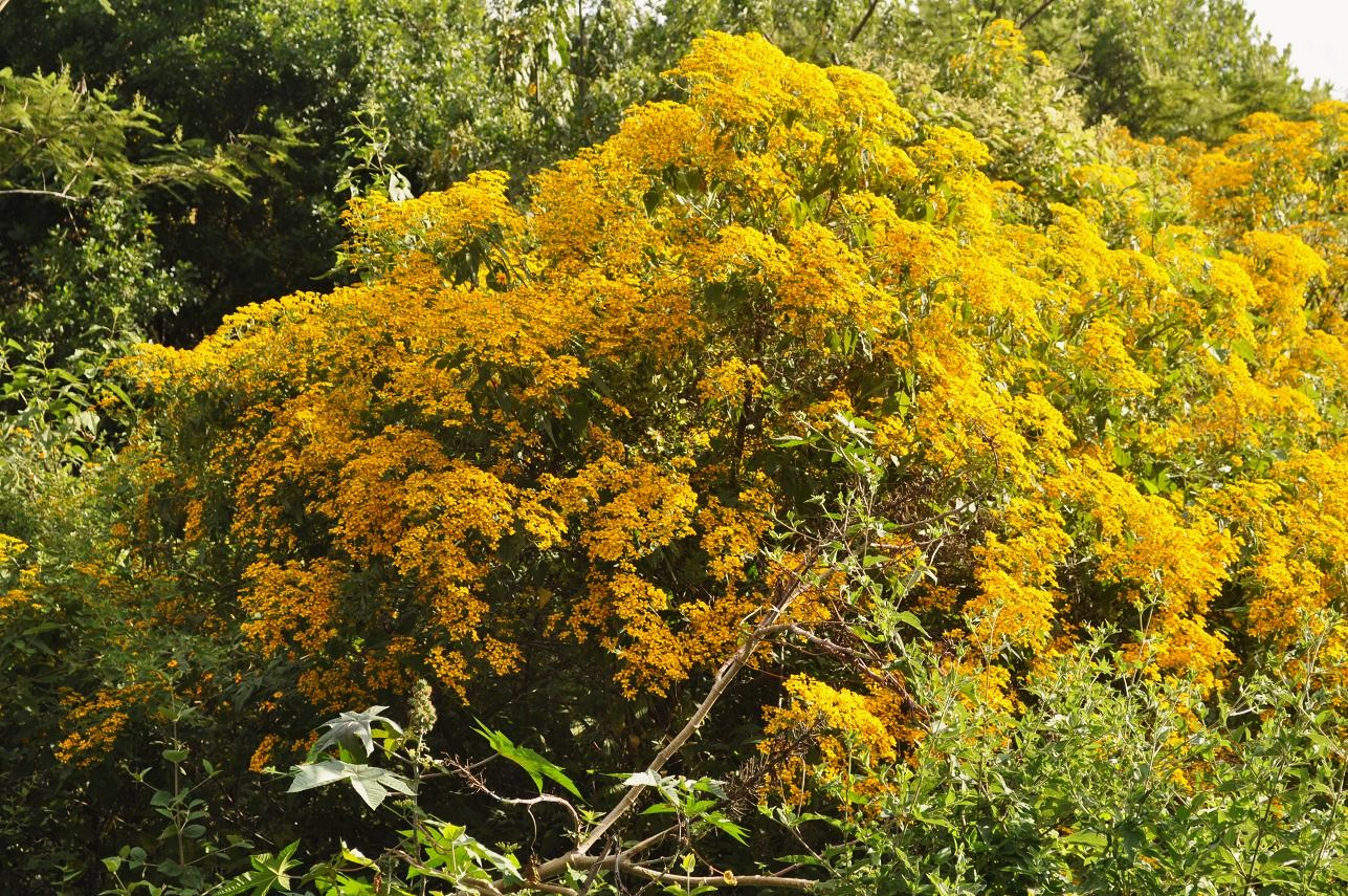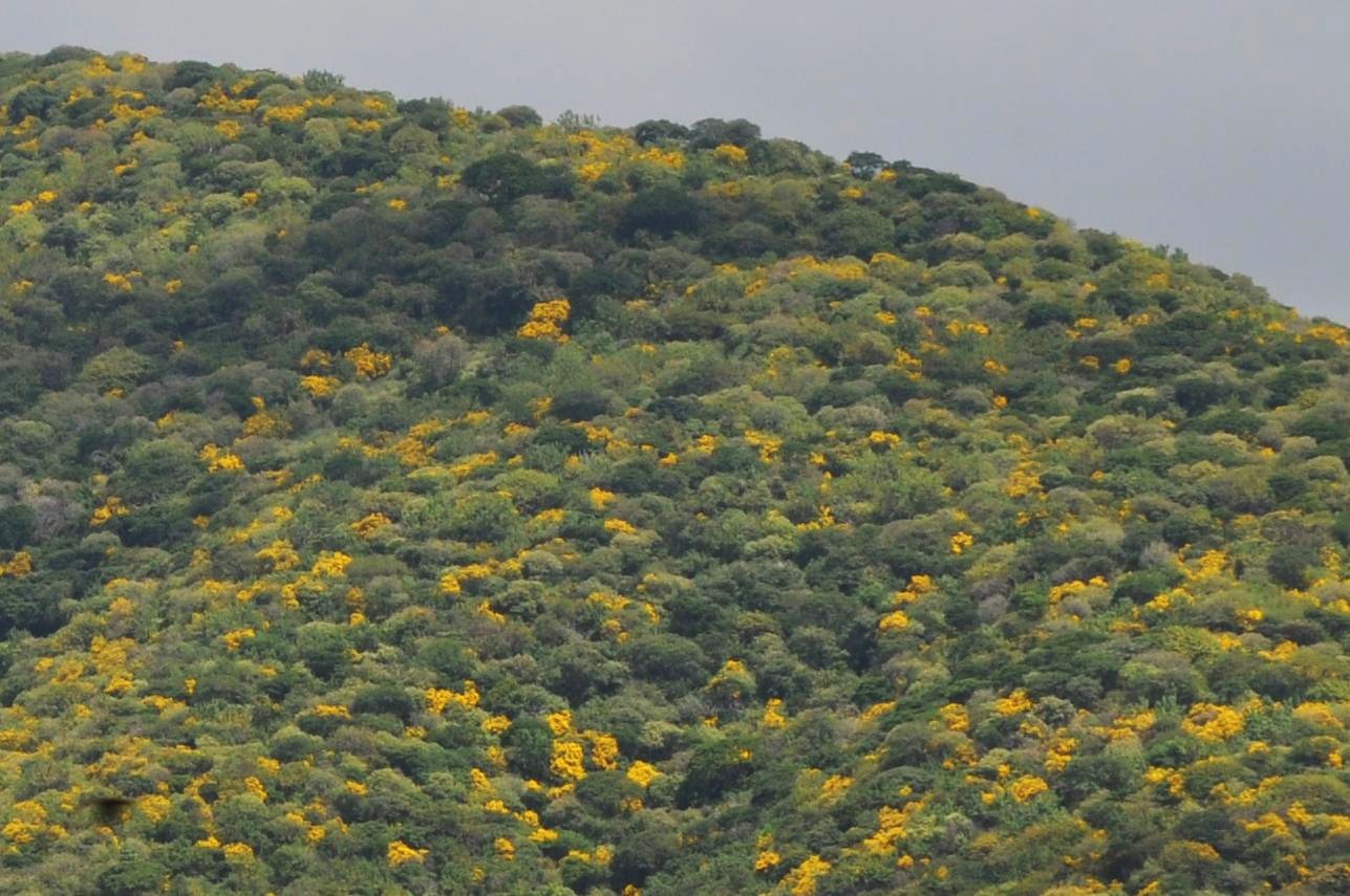 A very common shrub with brilliant yellow flowers (not sure of the species) above Ajijic.