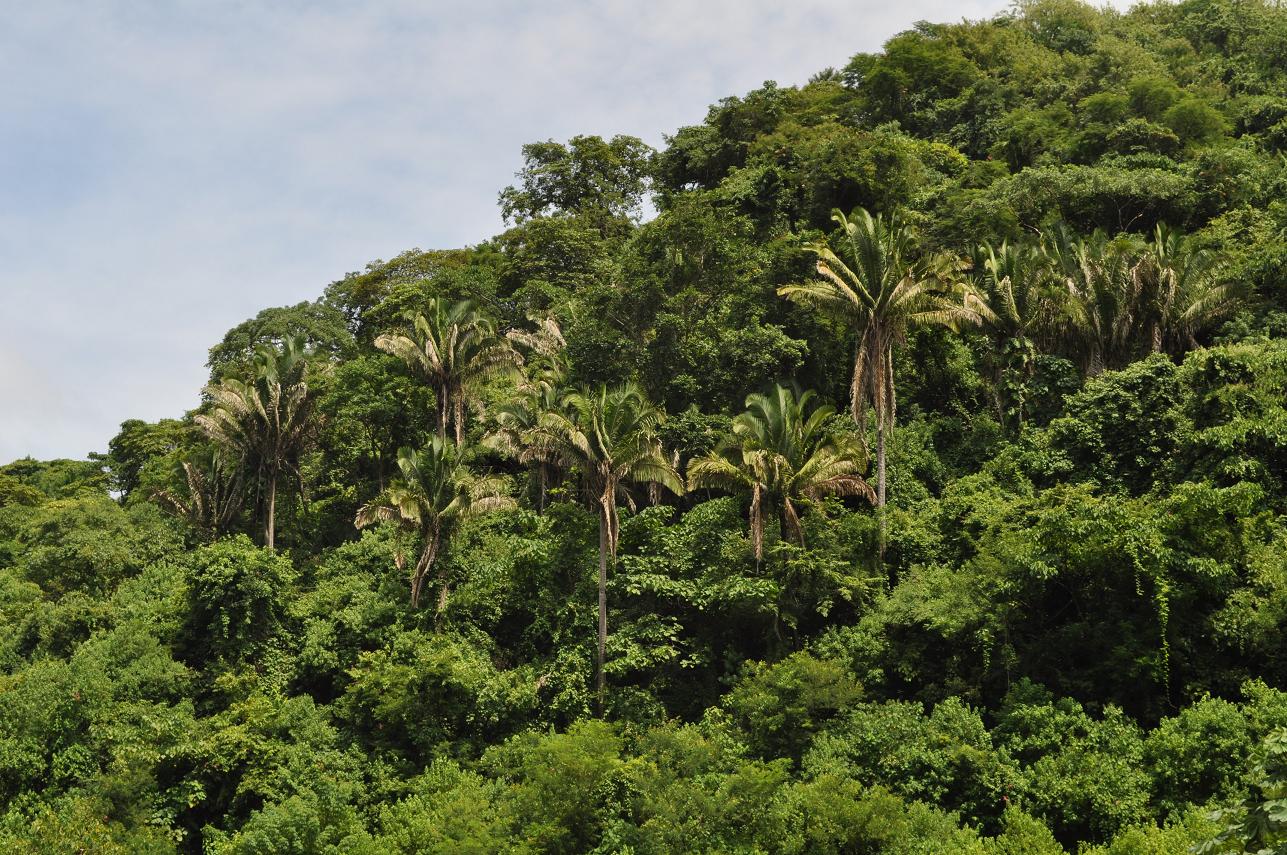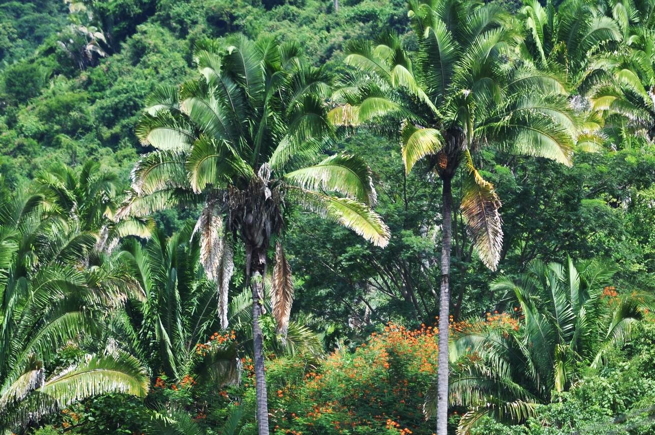 Cohune palms (Attalea cohune) were common on the slopes in this area...