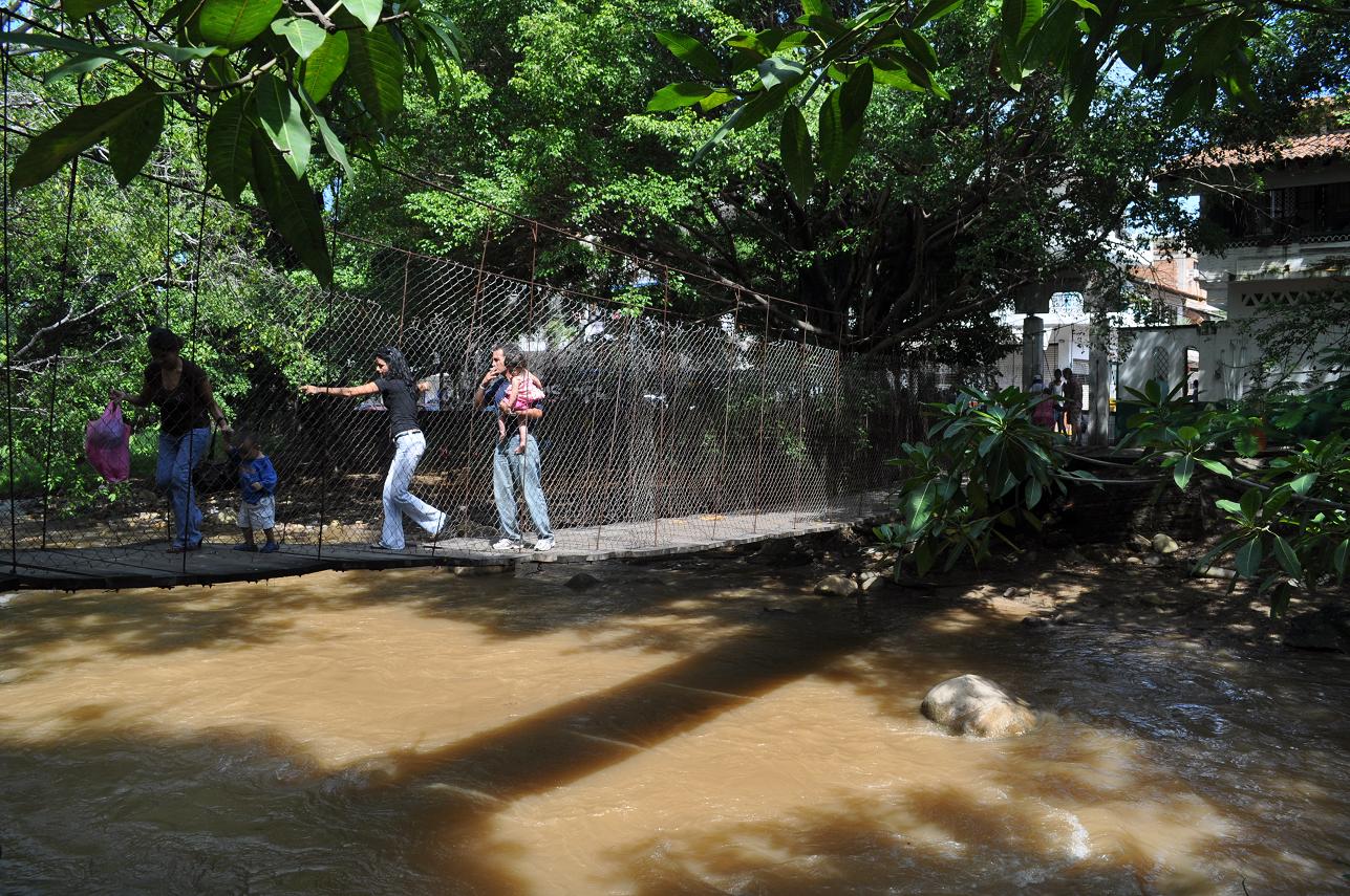 Swinging (and difficult to use) foot bridge over one of the branches of the Río Cuale...